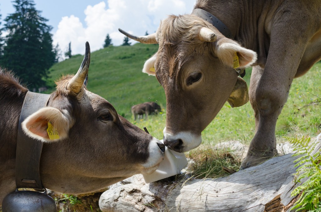 Auf saftigen, grünen Wiesen weidet das Allgäuer Milchvieh. Eine Rasse ist besonders weit verbreitet – welche Farbe haben diese typischen Allgäuer Kühe?