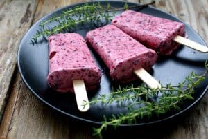 Für das Heidelbeeren-Joghurt Eis benötigt man entsprechende Eis-am-Stiel-Förmchen.