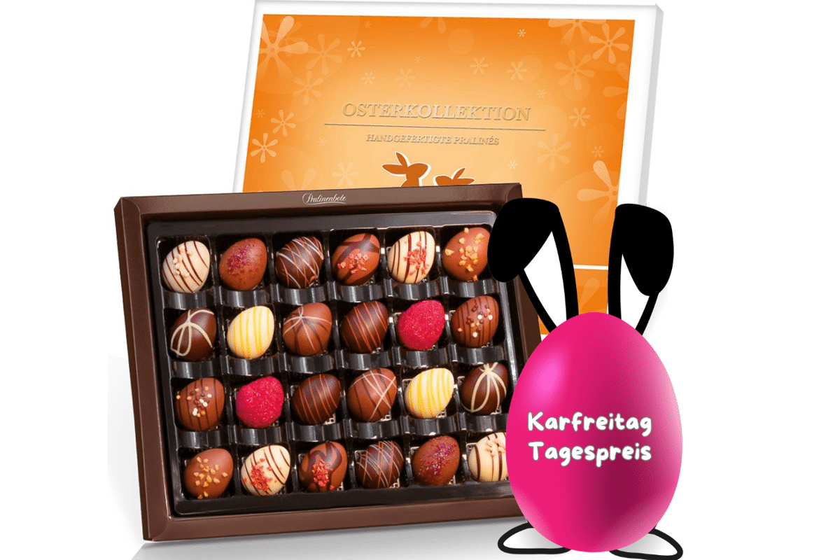 Gewinne eine von drei Osterpralinen‑Geschenkboxen aus der Pralinenbote Genussmanufaktur in Rhede. Jetzt am Karfreitag teilnehmen und handgemachte Osterleckereien entdecken.