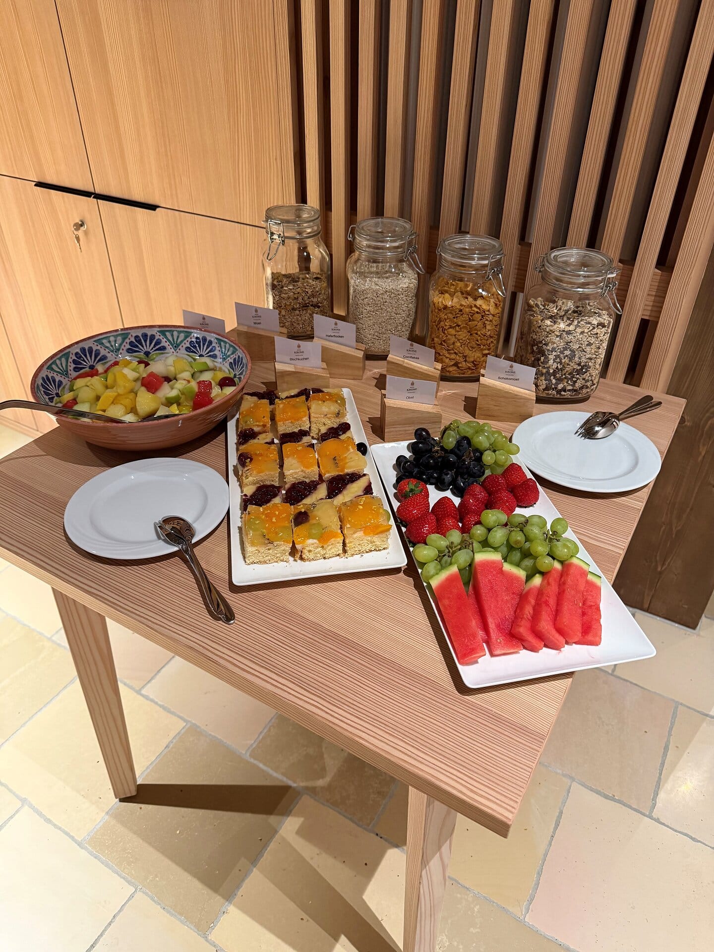 Das Frühstücksbuffet am nächsten Morgen war durchdacht, reichhaltig und erfreulich hochwertig. Besonders positiv fielen die regionalen Käse- und Brotsorten sowie die hausgemachten Marmeladen auf – kein 0815-Angebot, sondern eine stimmige Auswahl, die Frische und Qualität betont.