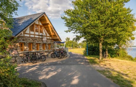 So wurde fußläufig zum Hotel das neue Strandrestaurant „Lutki-Hütte“ eröffnet – ein spektakulärer Bau mit Außenwänden aus echtem Felsgestein und einem Naturschieferdach. Innen fühlt man sich wie in einem alten Gasthof – urig, charmant und dabei trotzdem hochwertig. Der dazugehörige Biergarten mit karibischem Flair, breitem gastronomischem Angebot und traumhaftem Blick über den Senftenberger See bietet eine entspannte Alternative zur klassischen Terrasse – besonders an lauen Sommerabenden.