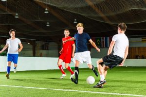 6. Indoor Soccer: Für alle Fußballverrückten, die keine Lust auf Winterwetter und matschige Rasenflächen haben, ist Indoor Soccer, auch als Hallenfußball bekannt, eine gute Alternative. In der Halle sind Feld und Tore kleiner, der Rasen ist aus Kunststofffasern und die Mannschaften schrumpfen von 11 auf 5 Spieler. Zudem ist das Spielfeld von einer Bande umgeben, die dafür sorgt, dass der Ball immer im Spiel bleibt; zusätzlich kann man die Bande für Tricks und Pässe benutzen. Beim Indoor Soccer kann man Technik und Ballgefühl besonders trainieren, da viele Ballkontakte auf engem Raum stattfinden.