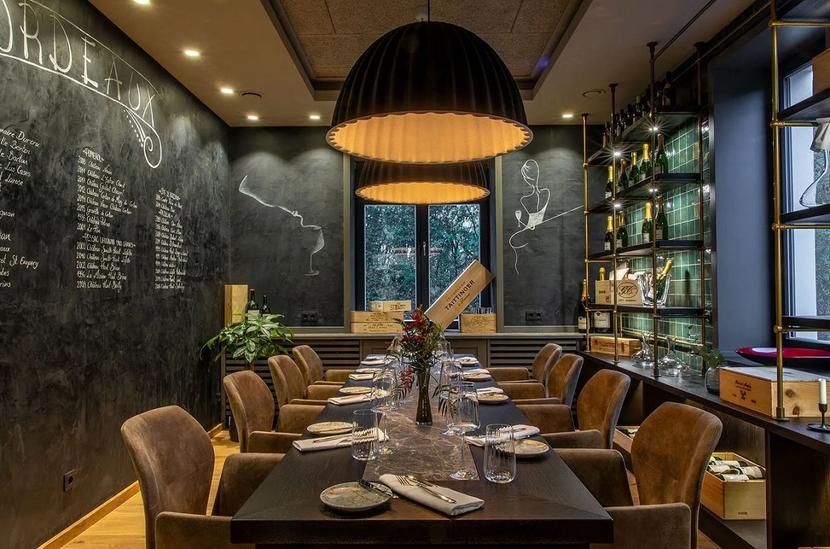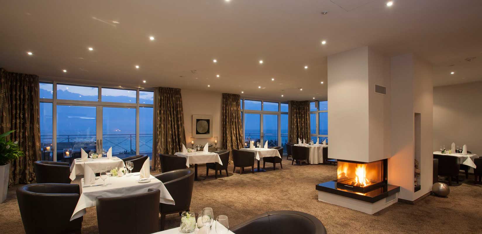 Das Fine-Dining-Restaurant zeigt sich im alpinen Architekturdesign und erinnert ein wenig an ein luxuriöses Bergchalet. Während am Mittag ein unkonventioneller Business Lunch angeboten wird, erwartet Sie am Abend ein außergewöhnliches Dinner in Form eines Gourmetmenüs mit einer klaren Ausrichtung auf regionale Zutaten aus dem Voralpenland und mit Produkten nachhaltig produzierender Zulieferbetriebe für Gemüseanbau, Fisch- und Tierzucht.