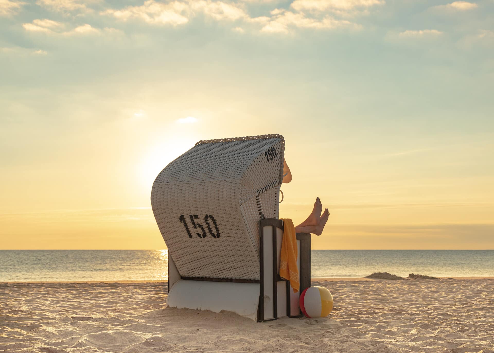 - Entspannung im Strandkorb – Sonnenaufgang: © ii-graphics - stock.adobe.com