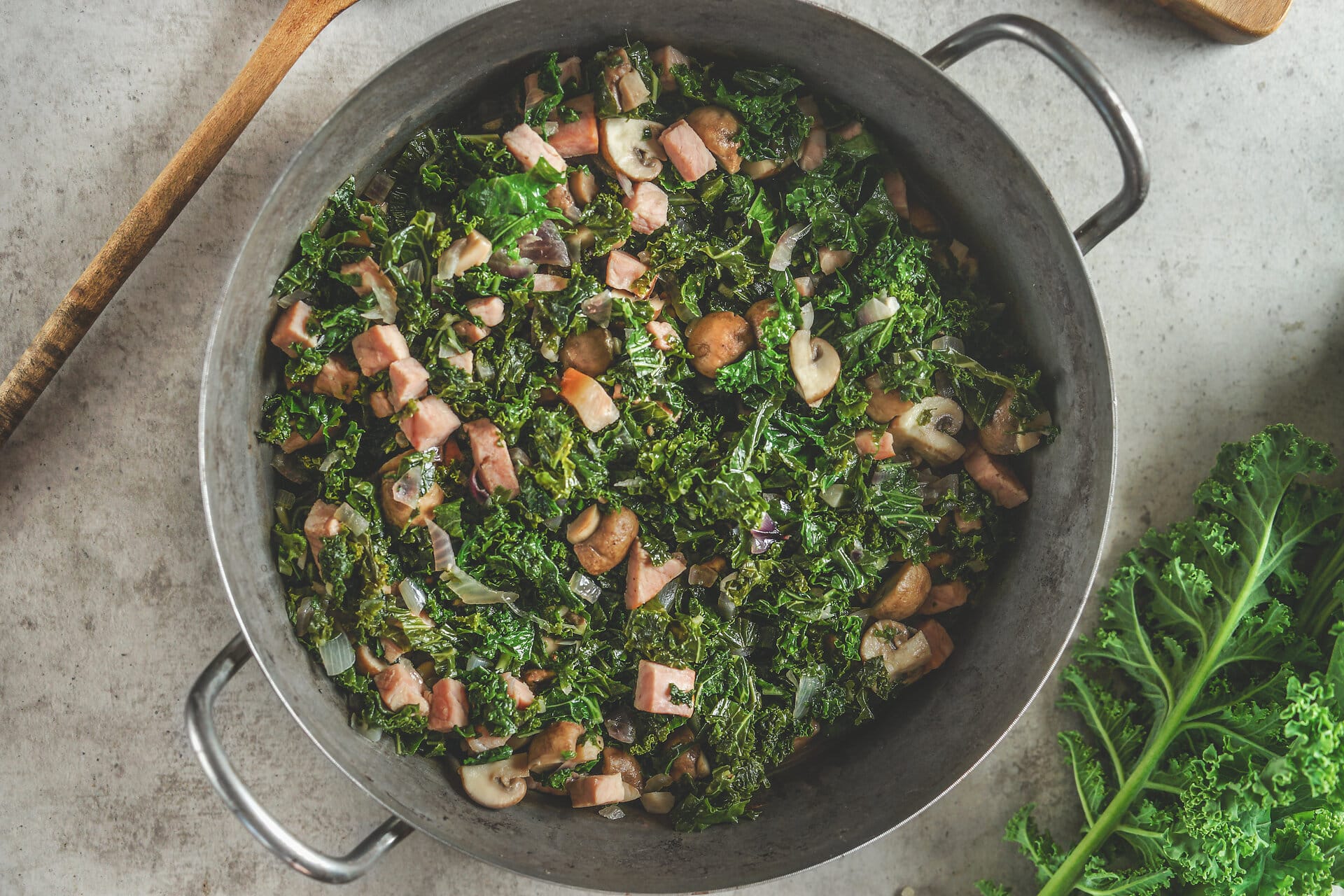 Grünkohl ist ein Klassiker unter den Wintergemüsen und ein echtes Superfood, denn er enthält z.B. doppelt so viel Vitamin C wie eine Zitrone und ist damit ein perfektes Gemüse für die kalte Jahreszeit. Zudem stärken seine sekundären Pflanzenstoffe das Immunsystem. Statt der klassischen Zubereitung mit Speck und Mettwurst kann man Grünkohl auch fettarm und eiweißreich zubereiten, nämlich mit Linsen und Kürbis – so wird der gesunde Grünkohl nicht gleich zur Kalorien- und Fettbombe.