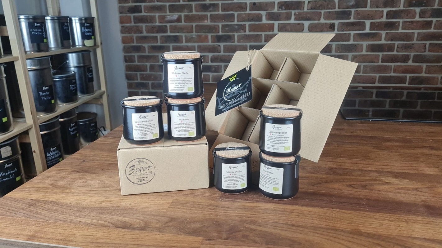 Das Alte Gewürzamt wurde im Jahr 2001 vom ehemaligen Spitzenkoch Ingo Holland gegründet und wird nun von Sohn Kilian geführt - ein echtes Familienunternehmen. Die exklusiven Gewürze und Mischungen werden in Klingenberg selbst entwickelt, geröstet, gemischt und gemahlen. Altes Gewürzamt | KlingenbergDie Produktpalette des Alten Gewürzamtes reicht von hochwertigen Einzelgewürzen über phantasievolle Mischungen, die über die Grenzen Deutschlands bekannt sind, bis hin zur „Gold-Edition“, bei der Anhänger der gehobenen Küche allerlei exotische Raritäten und luxuriöse Inspirationen entdecken können. ANKERKRAUT | HamburgANKERKRAUT, die Geschmacksmanufaktur aus Hamburg, gibt es seit 2013. Die Gründer Stefan und Anne Lemcke stellten zu Beginn ihre Gewürzmischungen noch in der eigenen Küche her. Bis heute ist ANKERKRAUT in Geschäften in Deutschland, Österreich, Schweiz, Italien, Dänemark, Schweden und der Niederlande vertreten. ANKERKRAUT | HamburgANKERKRAUT bietet würzigen Genuss ohne Rieselhilfen und Geschmacksverstärker. Von wichtigen Basics wie Oregano, Paprika oder Curry über spezielle Salze aus Hawaii und Pfeffer-Kompositionen aus neun verschiedenen Körnern bis hin zu hausgemachten Mischungen für den Herd und Rubs für ein perfektes BBQ-Erlebnis. Bergische Gewürzmanufaktur | RemscheidRalf Fiedler hat schon als Kind seine Leidenschaft fürs Kochen und Würzen entdeckt. Seine Bergische Gewürzmanufaktur ist aus dem Wunsch heraus entstanden, nicht nur Gewürze anzubieten, die höchsten Qualitäts- und Geschmacksansprüche gerecht werden, sondern dabei auch für jeden erschwinglich zu bleiben. Bergische Gewürzmanufaktur | RemscheidDie Bergische Gewürzmanufaktur bietet Gewürze und allergenfreie Gewürzmischungen sowie Tee und Zubehör in hervorragender Qualität und zu fairen Preisen. Die selbst hergestellten Gewürzmischungen kommen komplett ohne Geschmacksverstärker und Milchzucker aus, auch Zucker ist in nur wenigen Mischungen enthalten. Direkt vom Feld | ChemnitzAuf der Suche nach den besten Gewürzen reisen die Macher von Direkt vom Feld aus Chemnitz um die ganze Welt und stehen in direktem Kontakt mit den Erzeugern. Das Ergebnis sind Gewürze, die in keiner Küche fehlen dürfen - in außergewöhnlicher Qualität, rein biologisch, fair und nachhaltig angebaut. Direkt vom Feld | ChemnitzVertrauen vom Feld bis auf den Teller: Die Macher von Direkt vom Feld kennen ihre Produzenten persönlich und reisen bis zum Ursprung ihrer Gewürze - dort, wo wahrer Geschmack entsteht. So bilden sich gegenseitiges Vertrauen, faire Preise und Transparenz bis ins kleinste Pfefferkorn. Gewürz Mayer | StuttgartGewürz Mayer ist ein kleines, inhabergeführtes Unternehmen, das sich seit 60 Jahren auf den Verkauf von Gewürzen, Gewürzmischungen und Tee konzentriert. Seit drei Generationen arbeitet man bei Gewürz Mayer nach dem Motto "beste Qualität zu einem vernünftigen Preis" und kann flexibel auf Kundenwünsche eingehen. Gewürz Mayer | StuttgartBei Gewürz Mayer legt man großen Wert auf eine fachkundige Beratung - darum werden die Produkte ausschließlich im Eigenvertrieb vermarktet. Dreh- und Angelpunkt hierfür ist der Verkaufsstand im „Schwäbischen Feinschmeckerparadies“, der Stuttgarter Markthalle, der seit 1982 besteht. Grünberg Gewürzmanufaktur | ZevenDie Grünberg Gewürzmanufaktur wurde 2012 gegründet, um einfach hochwertige Biogewürze auf den Markt zu bringen. Ansprechend und modern sollten die Gewürze daherkommen - so sind die Pappwickeldosen entstanden, in denen mittlerweile über 60 verschiedene Gewürzmischungen zu finden sind. Grünberg Gewürzmanufaktur | ZevenDie Grünberg Gewürzmanufaktur möchte mit ihren Gewürzmischungen Spaß, Genuss und Pfiff in die Küche bringen. Neben der nachhaltigen Verpackung sind die Gewürze natürlich in bester Bio-Qualität, frei von Geschmacksverstärkern, Farbstoffen, Rieselhilfen und ähnlichem. Zudem werden die Rohstoffe von unabhängigen Laboren geprüft. Ledigs Gewürzmanufaktur | NeuriedLedigs Gewürzmanufaktur hat sich auf die Herstellung hochwertiger Gewürzmischungen nach eigenen Rezepten spezialisiert. Das kleine Familienunternehmen besteht aus Edy, Renate und Olivier Ledig und war ursprünglich als Hobby angedacht - inzwischen beliefert man nicht nur treue Stammkunden, sondern auch einige Händler. Ledigs Gewürzmanufaktur | NeuriedFür die Gewürzmischungen verwendet man in Ledigs Gewürzmanufaktur nur die besten Rohgewürze, auf den Einsatz von Geschmacksverstärkern, Glutamaten und Konservierungsstoffen wird verzichtet. Produziert werden nur kleine Chargen und in kurzen Zeiträumen, um optimale Qualität und Aroma zu gewährleisten. Pfeffersack & Söhne | KoblenzStangenpfeffer aus Indonesien, Tonkabohnen aus Brasilien, Kerbel aus Deutschland - oder Vanille aus Madagaskar? Bei Pfeffersack & Söhne in Koblenz kommen nur die besten und edelsten Gewürze der Welt in Frage – und in die Dose. Zusätzlich arbeitet die Manufaktur ständig an neuen Gewürzmischungen. Pfeffersack & Söhne | KoblenzBei Pfeffersack & Söhne bezieht man einen beachtlichen Teil der Gewürze in Bio-Qualität. Mit jedem Kauf unterstützt man Kleinbauern und Erzeugerinitiativen auf der ganzen Welt, die jeden Tag alles geben, um die beste Qualität zu liefern. Viele der Gewürze wachsen sogar wild an den entlegensten Orten der Welt. Spirit of Spice | WillichUte und Edgar Bornholdt sind die Macher der Gewürz- und Feinkost-Manufaktur Spirit of Spice. Die beiden produzieren verantwortungsvoll, transparent und nachhaltig handverlesene Gewürze und Gewürzmischungen von höchster Qualität. Diese kommen aus aller Welt, werden schonend verarbeitet und in formschöne Verpackungen abgefüllt. Spirit of Spice | WillichNur erstklassige, fair angebaute und verarbeitete Rohstoffe, also 100% reine Naturprodukte ohne Geschmacksverstärker und Zusatzstoffe, werden für die Gewürzmischungen verwendet. Produziert wird in der eigens dafür errich
