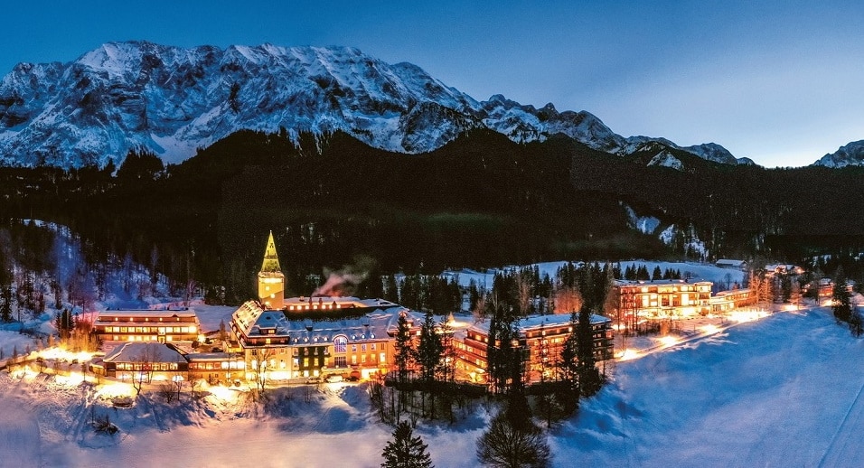 - Außenansicht Winter Schloss Elmau Krün: © facebook.com/schlosselmau
