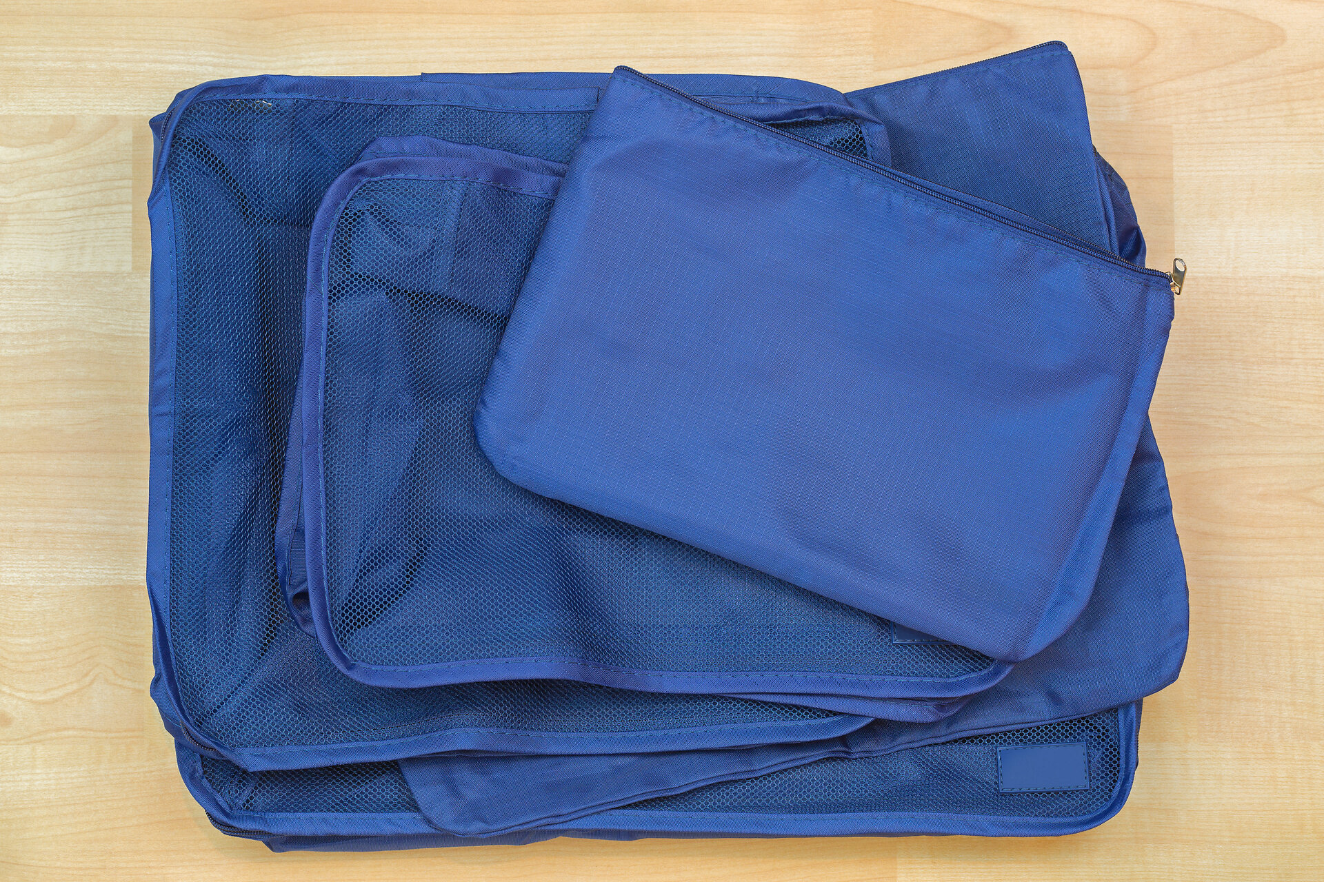 - Different blue cube bags, set of travel organizer to help packing luggage easy: © sasimoto - stock.adobe.com