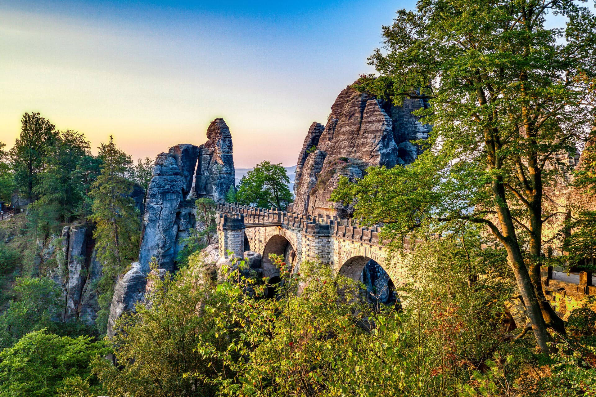 - Felsenbrücke Bastei, Sonnenaufgang: © Sonja und Gerald - stock.adobe.com