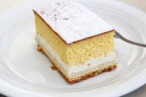 Scheckig, köstlich und fluffig – die Eierschecke ist eine Kuchenspezialität, die aus Thüringen und Sachsen kommt. Sie hat ihren Namen tatsächlich von einem Kleidungsstück: Im 14. Jahrhundert bezeichnete man als Schecke eine Form der dreigeteilten Männerkleidung. Dieser Dreiklang kommt auch bei dem Kuchen vor – allerdings scheint die Herleitung sehr sehr weit hergeholt. Bei dem Kuchen backt man drei Schichten: Die oberste Schicht besteht aus Eigelb mit Butter, Zucker und Vanillepudding, die zweite aus Quark-Vanillepudding und die dritte, der Boden, besteht aus Rührteig oder Hefeteig. Das Gebäck schmeckt das ganze Jahr, man braucht keine Zutaten, die jahreszeitlich nicht vorhanden wären.