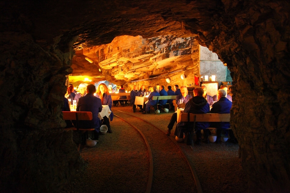 9. Gruben-Light-Dinner, Sauerland: Schon mal in einem Bergwerk gegessen? Mitten im Sauerland können Sie in 300 m Tiefe ein einzigartiges Dinner-Erlebnis genießen. In einem romantisch beleuchteten Stollen des Erzbergwerks Ramsbeck erwartet Sie ein kulinarisches Erlebnis inmitten alter Originalwerkzeuge. Gegessen wird an festlich gedeckten Tischen, die mit Kerzen und Erzsteinen dekoriert sind.
