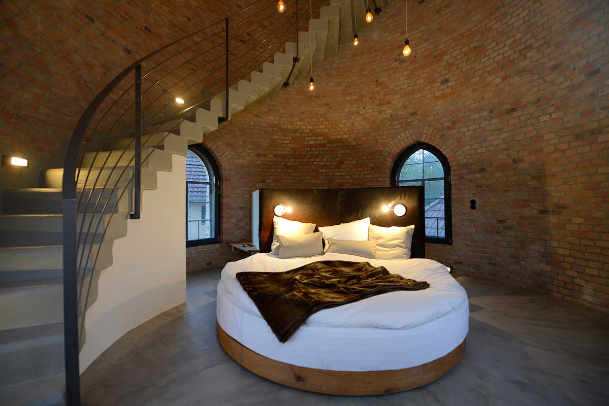 Lange stand der Wasserturm zu Bad Saarow leer, der alte Wassertank oben auf dem Turm wurde abgerissen und das Bauwerk drohte gar zu verfallen. Heute hat man vom neuen verglasten Aufsatz einen herrlichen Blick auf den Scharmützelsee, im Inneren besticht der Turm mit einem freischwingendem Kamin und einem Whirlpool aus Holz und die dicken Backsteinmauern sorgen für ein entspanntes Verweilen jenseits der hektischen Welt. Service genießt man hier wie in einem „gewöhnlichen“ Hotel, doch zusätzlich hat man die Freiheiten eines Turmherren: man wird zum vereinbarten Ankunftszeitpunkt in Empfang genommen, eingewiesen in Whirlpool, Kamin, Minibar, Technik und Turmgeheimnisse und muss zum Schluss nur noch mitteilen, wann am nächsten Morgen das Frühstück auf die erste Treppenstufe gestellt werden darf – danach ist man alleiniger Turmherr im Wasserturm Bad Saarow.