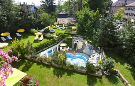 Fließende, sprudelnde, dampfende und massierende Wasserströme umgeben Sie mit Wohlbehagen in unserer exklusiven Wellnesslandschaft, im Winter ist der Außenpool mit 30 Grad warmem Wasser ein Erlebnis – im Sommer mit 24 Grad eine erfrischende Abkühlung! Im einmaligen Thermal-Natursolebad mit 5% Salzgehalt werden Gelenke und Haut spürbar verjüngt. Die fünf Saunen mit Erlebnisduschen sowie Kristallsaline mit Entspannungs-Videoshow, Luxusbädern, original Kneippanwendungen, Physiotherapie mitsamt klassischer Massagen, Rasul und Hamamanwendungen und hochwertige Kosmetik – bieten eine „Deluxe“ Wohlfühlbetreuung.