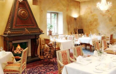 Erleben Sie unvergessliche Stunden im stilvollen Ambiente unseres Gourmetrestaurants. In den behaglichen Räumlichkeiten oder auf der Parkterrasse im Schlosshof kann man so richtig entspannen und dem Genuss freien Lauf lassen. Ausgestattet mit ausgefallenen Wandmalereien und einem historischen offenen Kamin eröffnet sich dem Besucher ein einzigartiges Ambiente. Von Montag bis Sonntag wird den Gästen die monatlich wechselnden Gourmetkarte gereicht und der Küchenchef zaubert ausgefallene Spezialitäten der mediterranen Küche auf höchstem Niveau. Abgerundet wird das Erlebnis durch den aufmerksamen und angenehmen Service, der die Gäste ebenso stilsicher wie auch kenntnisreich betreut und mit pfälzischen (teilweise aus der eigenen Lage „Schloss Edesheim“) und italienischen Spitzenweine aus dem Schlosskeller verwöhnt.