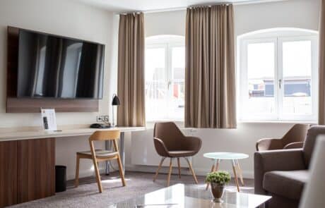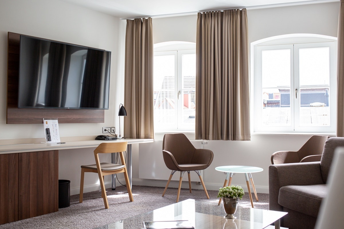 Um den Ansprüchen moderner Hotellerie zu entsprechen, wurde das gesamte Weinhaus Uhle 2016 nach modernen Normen saniert. Die 16 Zimmer und 2 Suiten mit klaren Formen und ruhigen Flächen wirken harmonisch und beruhigend. Mit sanften farbigen Akzenten und jeglichem Komfort kommen Sie hier zur Ruhe – mitten im Herzen Schwerins. Erleben Sie bei uns Begeisterung für hochwertigen Service und die Leidenschaft zum Wein.