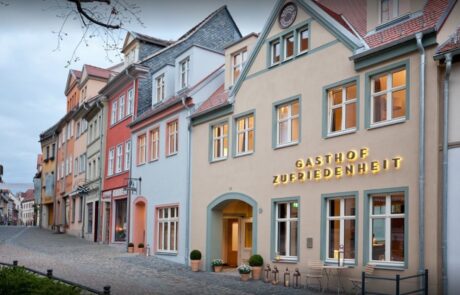 Herzlich willkommen im Gasthof Zufriedenheit, dem individuellen Boutique-Hotel mit 15 Zimmern und 2 Suiten mitten im Herzen vom historischen Naumburg. Seit 1853 wird hier schon eine Gastwirtschaft betrieben, und auch heute sind unsere Weinstube und unser Restaurant wieder Orte der Begegnung. In weniger als zwei Minuten erreichen Sie vom Hotel aus den Naumburger Dom, der seit 2018 zu den Unesco Welterbestätten gehört, oder flanieren auf der mittelalterlichen Straße der Romanik. Erleben Sie Naumburg als Tor zur Weinregion Saale-Unstrut und entdecken Sie die vielen Schätze dieser einzigartigen Region in Sachsen-Anhalt. Wir freuen uns auf Sie!
