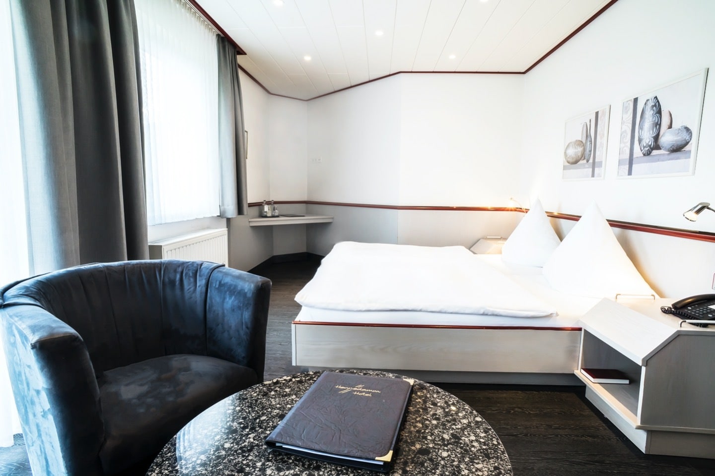 Sie beziehen eines unserer Hotelzimmer. Anreise ab 14:00 Uhr. Ab zwei Übernachtungen buchbar.