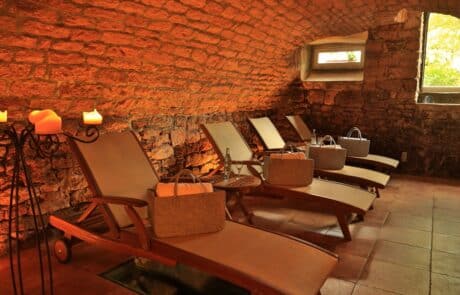 Tauchen Sie ein in das „Wohlfühlrefugium im Sandsteingewölbe“ in der Klostermühle. Seine heimelige Umgebung lässt sie leicht zur Ruhe kommen. Saunieren Sie finnisch oder nehmen Sie ein wohltuendes Kräuterdampfbad. Lassen Sie die Sinne in der prasselnden Erlebnisdusche schweifen. Sanfte Musik lässt Sie im Ruheraum wunderbar entspannen.