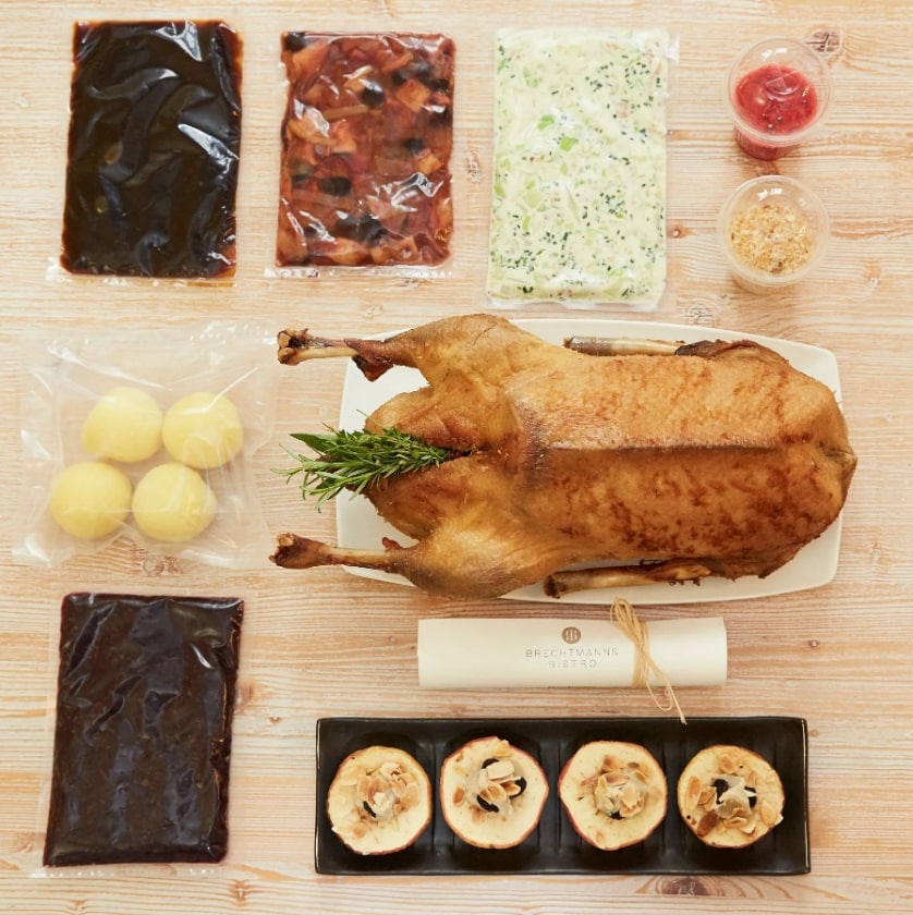 Das traditionellste Gericht zu Sankt Martin ist die Gans mit Rotkohl, Knödeln, kräftiger Jus und Marzipanbratäpfeln. Mit unseren vorgegarten Gänsen könnt Ihr dieses Festmahl stressfrei Zuhause zubereiten und Eurer Familie und Gästen servieren. Unsere knusprigen Gänse könnt Ihr bei uns online bestellen und im Restaurant abholen. Solltet Ihr nicht in Hamburg wohnen, könnt Ihr das Gans „to go“ Paket per DHL Express deutschlandweit liefern lassen.