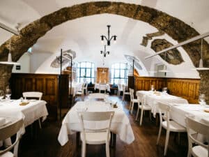 Das historische Restaurantgewölbe mit der Gemütlichkeit mehrerer Jahrhunderte hat schon vieles gesehen. Dagegen ist die modern gehaltene Brasserie-Bar der Widerpart zur traditionellen Gaststube. Gekocht wird mit wenig Schnickschnack, dafür mit viel Handwerk, Herz und Hirn. Im Vordergrund steht die schlichte Präsentation hochwertiger, größtenteils regionaler und saisonaler Produkte. Die Küche setzt sich aus der austro-europäischen Klassik, den Produkten des Alpenraums und der Leichtigkeit des Südens zusammen. Großer Wert wird auf die Zubereitung von Klassikern gelegt – auf der Karte finden sich Spezialitäten wie ausgelöstes Backhendl im Körberl mit Erdäpfel-Gurkensalat, Tafelspitz „klassisch“ im Kupferkessel, Topfenknödel und vieles mehr.