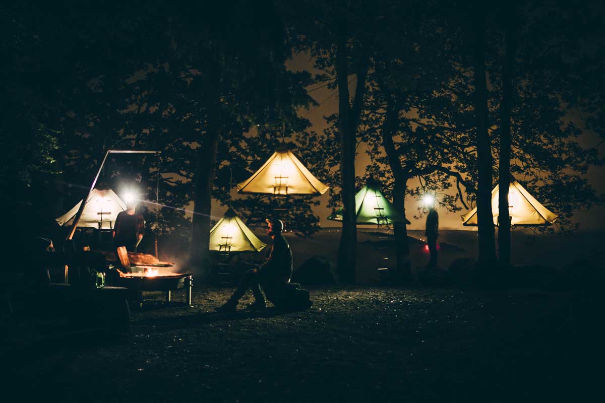 Ablauf der Nacht: Treffpunkt ist der Parkplatz „am Märchenwald“ direkt an der Cloef. Die letzten 300 Meter zum Camp werden zu Fuß zurückgelegt. Nach einer kurzen Einweisung wird der Schlafplatz am Baum befestigt. Danach gibt es Abendessen am Lagerfeuer in der Abenddämmerung.
