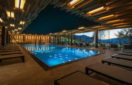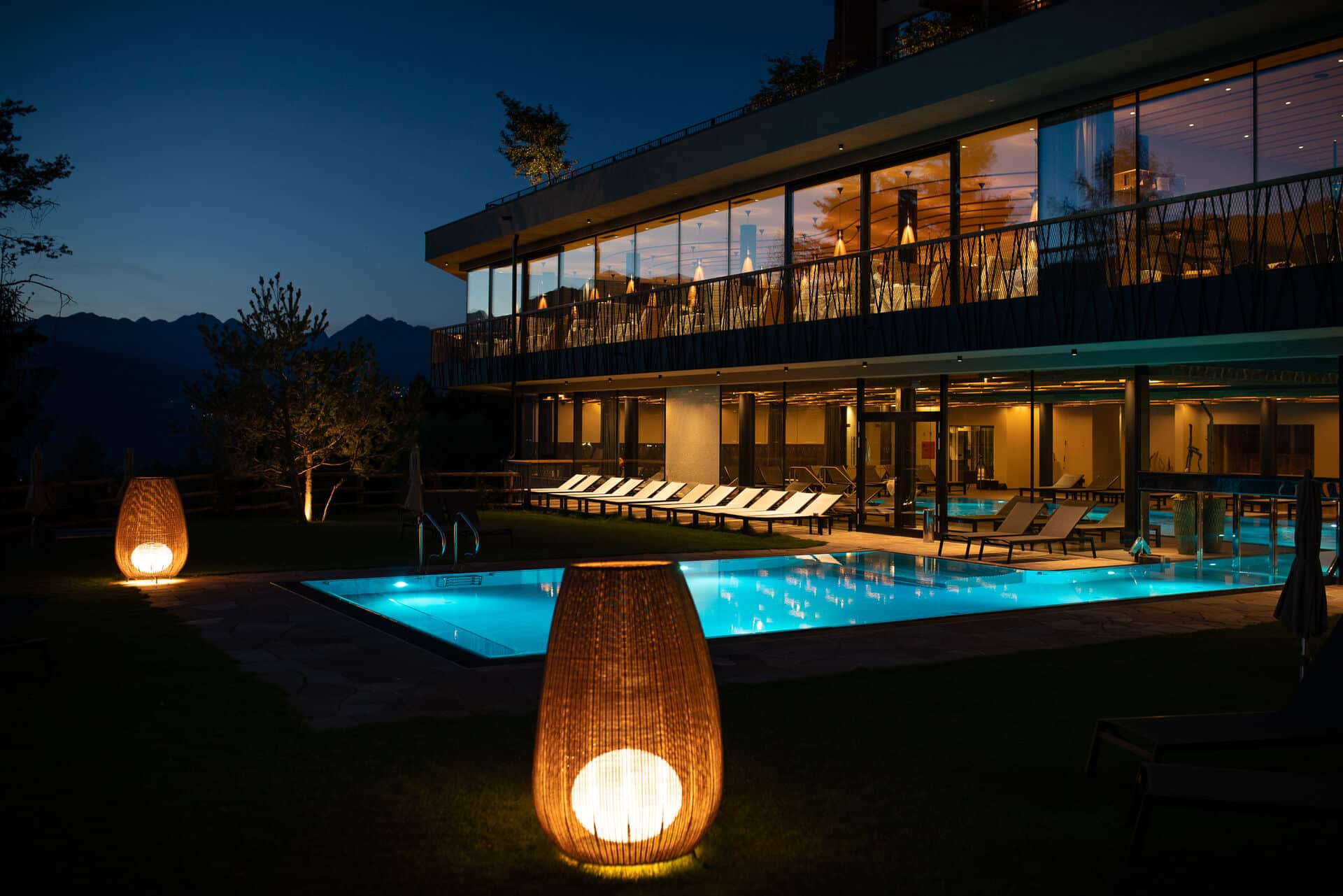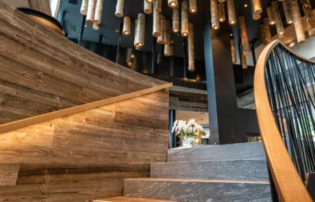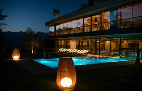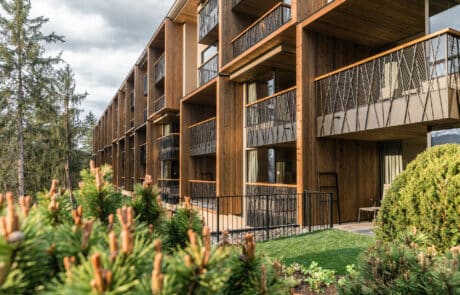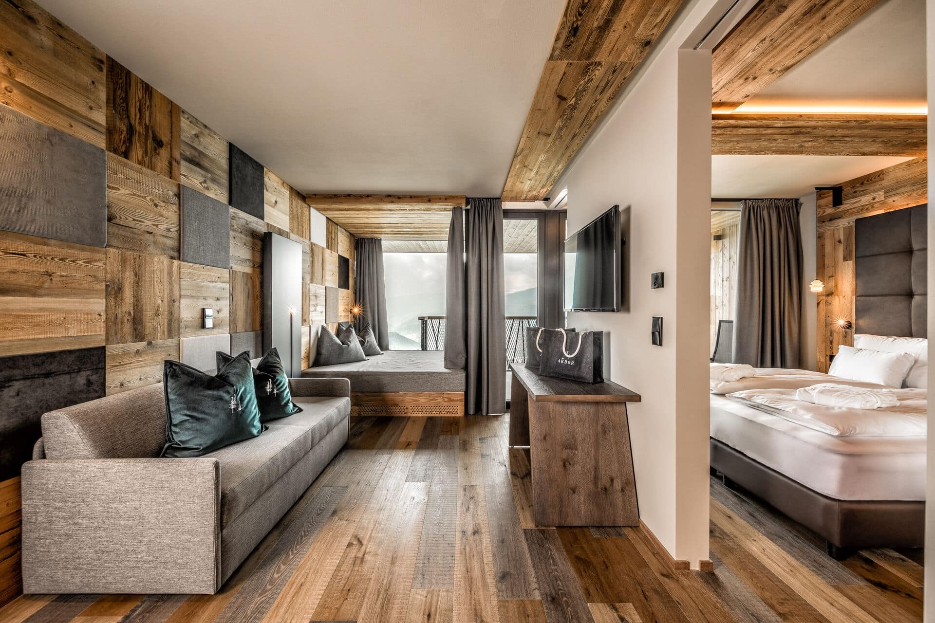 Das My Arbor Hotel (der Name leitet sich übrigens vom lateinischen „arbor“ für Baum ab) will ein natürlicher Rückzugsort sein, der seinen Gästen Geborgenheit und Sicherheit schenkt. Als Gast soll man hier das finden, was im hektischen Alltag oft zu kurz kommt: Zeit für das Ankommen, Zeit für das Sein, Zeit für die umliegende Natur, Zeit für sich selbst. Die 104 verschiedenen Zimmer verteilen sich auf vier Stockwerke und sind in drei Zimmerkategorien buchbar: Nest, Hangout und Treetop Suite. In der großzügigen Treetop Suite blickt man von der Terrasse mit Außenwhirlpool aus über die Baumkronen hinweg nach Süden in die Ferne und kann sich in der privaten Sauna entspannen. Mehr Entspannung findet man im Wellnessbereich „Spa Arboris“: Auf 2.500 qm gibt es hier einen Innen- und Außenpool, eine Saunawelt mit fünf Saunen und mehreren Erlebnisaufgüssen sowie zehn Behandlungsräume, die auf die vier Baumtypen Lärche, Zirbe, Latsche und Fichte ausgerichtet sind.