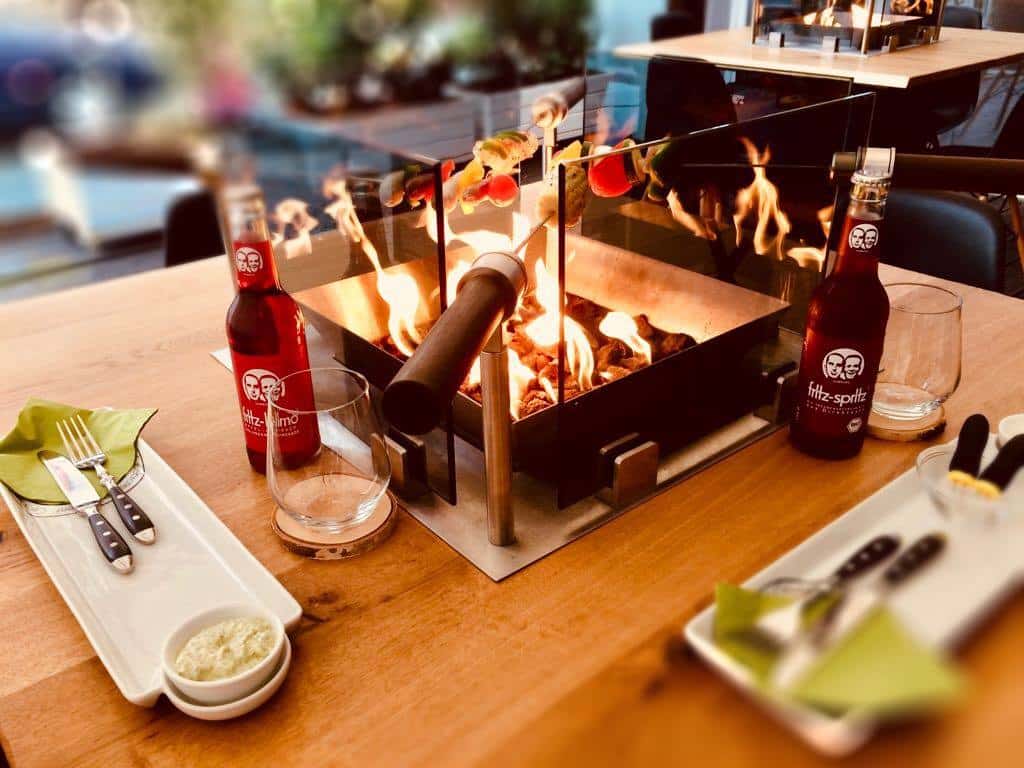 Knisterndes Lagerfeuer, der Duft von Abenteuer und Romantik, luftig lockerer Teig… Wer da ins Schwärmen kommt, der ist in der Stockbrotmanufaktur Feuer und Flamme genau richtig. Das Restaurant befindet sich direkt in der gemütlichen Altstadt im Herzen von Bad Nauheim und bietet Stockbrot in ausgewählten herzhaften und zuckersüßen Variationen, direkt gegrillt in geselliger Runde an einem von fünf Feuertischen. Wir früher am Lagerfeuer wird über offener Flamme gegrillt, und zu den Stockbrotvariationen gibt’s noch leckere Dips und Salate. Gegrillt wird natürlich draußen auf der Terrasse, also sollte man sich bei kühler Witterung entsprechend warm einpacken. An einem Feuertisch finden bis zu vier Personen Platz, wer mit einer größeren Gruppe kommt, wechselt sich einfach ab – wie früher am Lagerfeuer. Die Grillzeit beträgt in der Regel mindestens 90 Minuten, danach kann man im Café gemütlich Platz nehmen.