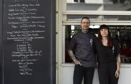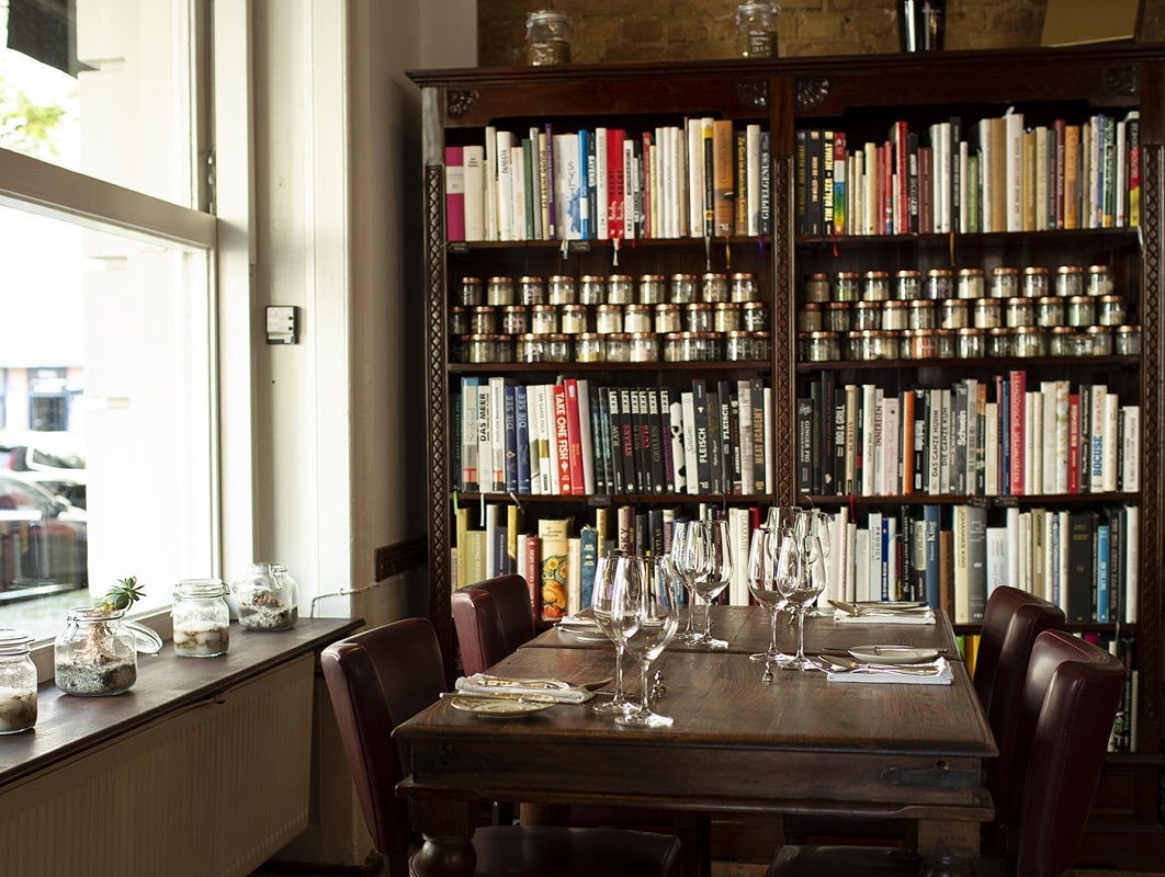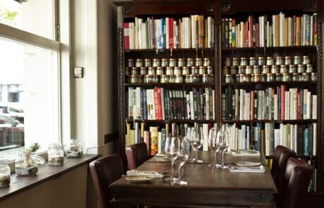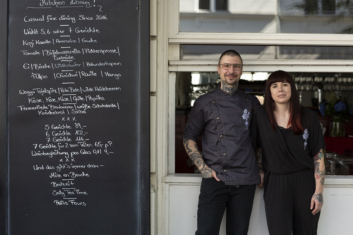 Der Name ist im Restaurant Kitchen Library Programm: Zwischen Regalen mit rund 800 Kochbüchern wähnt sich der Gast beinahe in einer Bibliothek. Eine weitere Besonderheit: Gastgeberin Daniela Knörlein und Küchenchef Udo bestreiten ihr Casual-Fine-Dining-Konzept nur zu zweit. Direkt auf der Achse des neu entstandenen Gourmetdreiecks am nördlichen Savignyplatz kocht Küchenchef Udo Tastingmenüs, die Haltung und Handschrift zeigen. Gastgeberin ist seine Frau Daniela, die nicht nur Hüterin des Kochbuch-Schatzes ist, sondern auch für spannende Weinbegleitungen mit Schwerpunkt auf Deutschland und Osteuropa sorgt.
