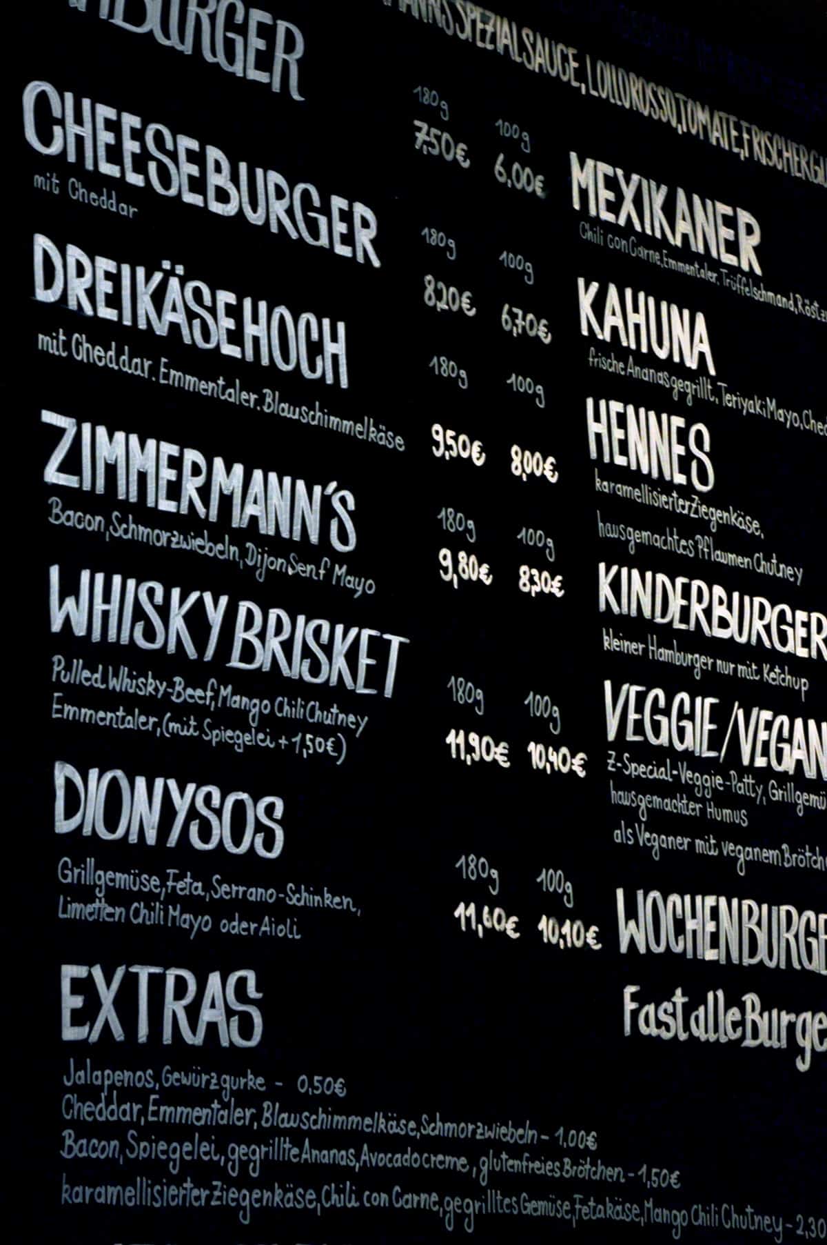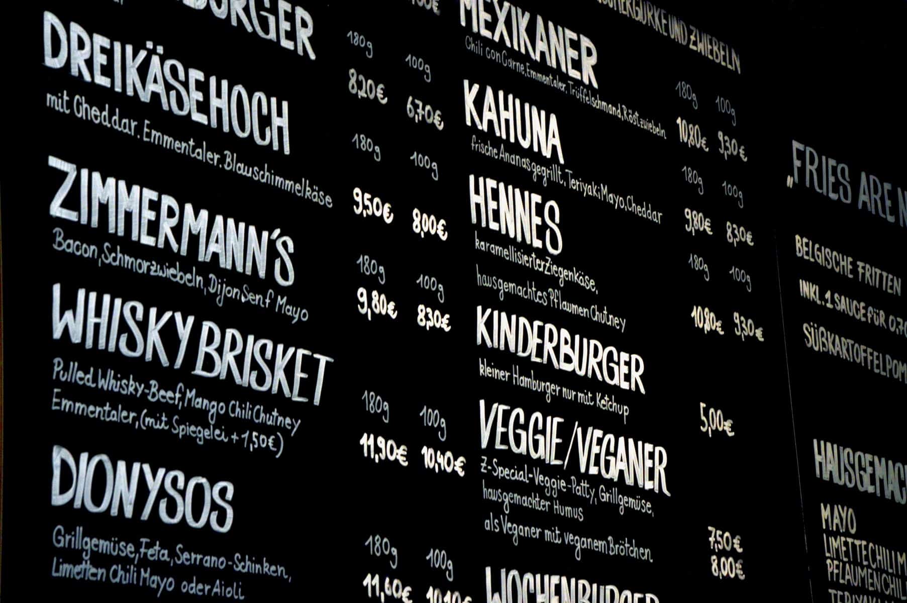 - Speisekarte in Zimmermanns Burger Köln: © BZS - Thomas Holzportz