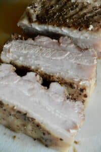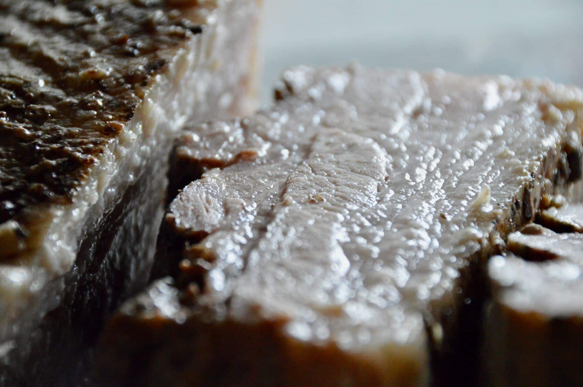 Warum 24 Stunden? Der Schweinebauch ist ein Stück mit viel Fett und Bindegewebe. Dieses Bindegewebe sollte weich werden, und das klappt am besten bei niedriger Temperatur, wie auch bei Rouladen im Schmortopf oder beim Pulled Pork im sanften Rauch bei 120°C. Je niedriger die Temperatur, desto länger braucht das Bindegewebe, um weich zu werden. Aber das Warten lohnt sich, denn durch die niedrige Temperatur denaturiert die Fleischfaser nicht so stark und behält die Fähigkeit, Flüssigkeit zu halten. Kurz gesagt: Weiches Fett und unbeschreiblich saftig-zartes Fleisch.