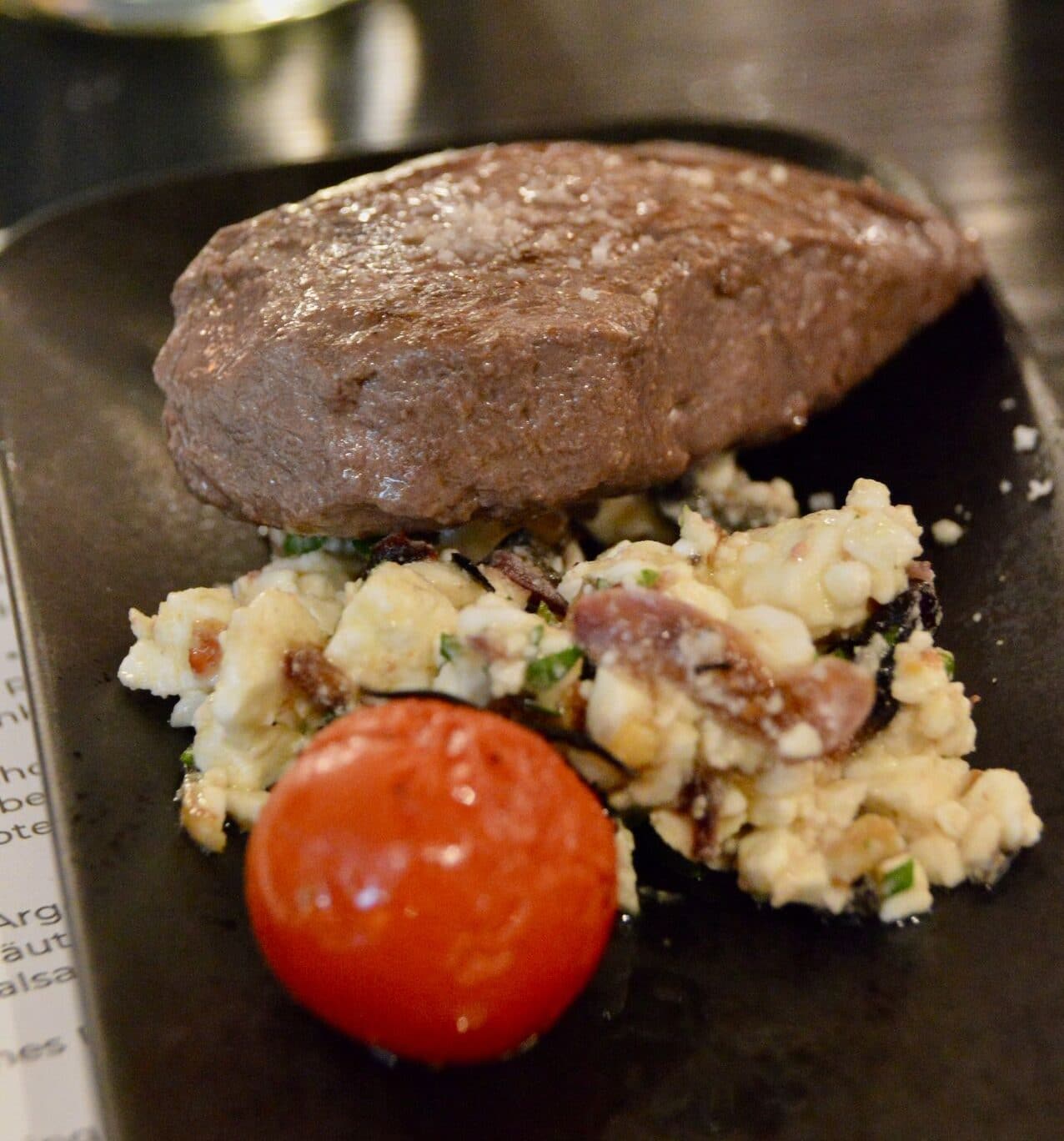 Ein solider Gang und insgesamt stimmig, leider ging durch den salzigen Feta das milde Filet etwas unter. Ich würde hier zusätzlich einfach einen charaktervollen Edelpfeffer beim Fleisch einbauen, um dem Ganzen einen zusätzlichen Kick zu verpassen.