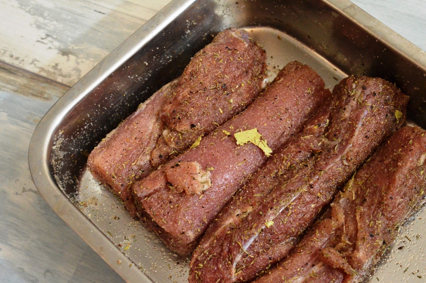 Das Gewürzpulver wird zum abgewogenen Pökelsalz gegeben und vermischt. Im letzten Schritt das Fleisch mit der Pökelsalz-Gewürzmischung einreiben und für 7 Tage einvakuumiert im Kühlschrank ruhen lassen, dabei alle zwei Tage wenden.