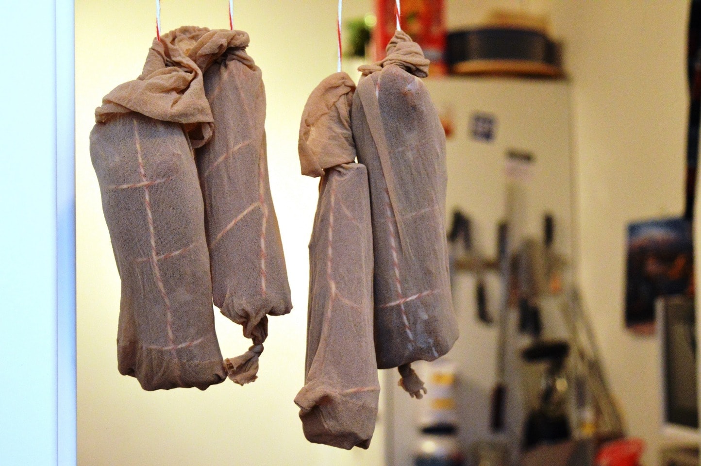 Wer den Schinken roh verspeisen möchte, bindet das Filet ab und hängt es an einen kühlen Ort im Keller, in der Garage oder wo sonst immer die Temperatur unter 18 °C liegt. Eine Raumfeuchte von über 70 % lässt den Schinken relativ gleichmäßig abtrocknen, so dass das Fleisch nach 3-7 Tagen (je nach Geschmack) seine perfekte Reife und Abtrocknung erreicht hat.