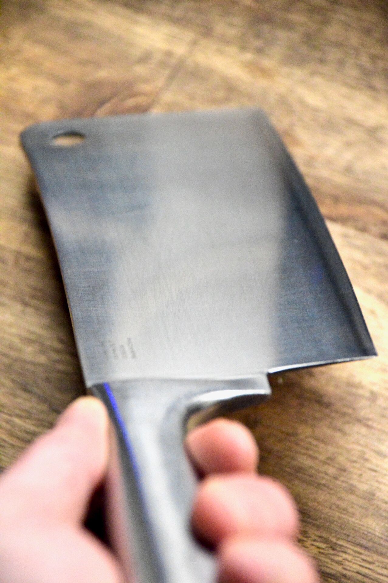 Seit geraumer Zeit ist mein Favorit und die “weapon of choice” das chinesische Hackmesser. Mit rund 20 cm Länge und einer 5 cm breiten Klinge erinnert die Form optisch an ein Beil, mit dem Hackmesser werden aber eher Gewürze und Kräuter gehackt als Knochen. Die breite Klinge eignet sich super zum Aufheben der frisch gehackten Lebensmittel und durch die geringe Dicke lassen sich auch feine und präzise Schnitte setzen. Für mich ist das Hackmesser daher der perfekte Allrounder für den Alltag – und ein Eyecatcher ist das Werkzeug zweifelsohne auch!