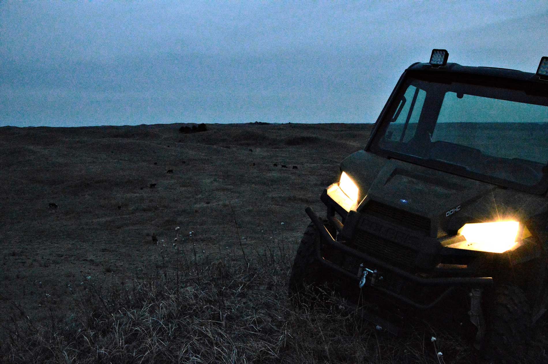 Die Rinder verteilen sich über etliche Quadratkilometer in den Weiten der Sandhills, wodurch die Kontrollfahrten im unwegsamen Gelände nicht gerade schnell erledigt sind. Diese werden im zwei- bis dreistündigen Rhythmus gefahren – Tag und Nacht.