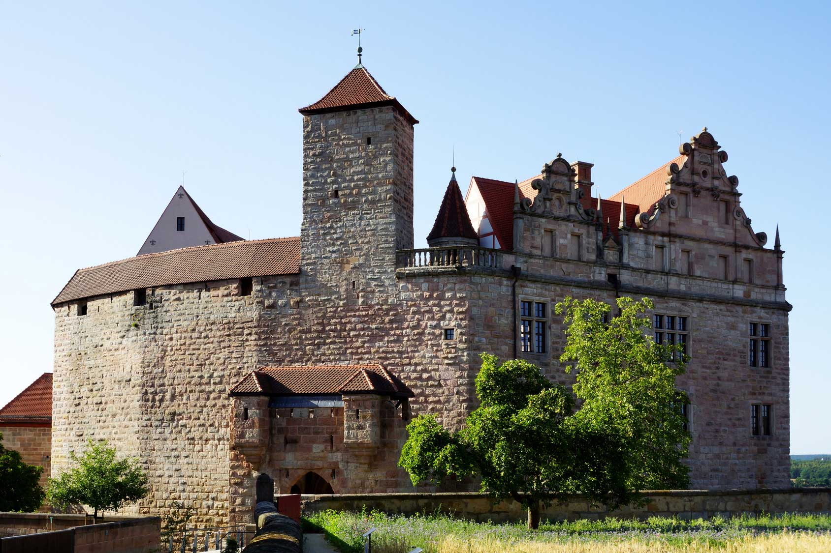 Unweit der großen Residenzstädte wie Würzburg, Bamberg und Aschaffenburg lohnen sich die Besuche der Residenzen in Ansbach und der zollerischen Burg Cadolzburg ebenso wie ein Abstecher zum Schloss Schillingsfürst oder dem Schlosspark Dennelohe, der zu den schönsten Gartenanlagen Deutschlands zählt. Fränkisches Fachwerk kann man in zahlreichen Städten bewundern, und in Bad Windsheim lässt sich ein Freilandmuseen besichtigen.