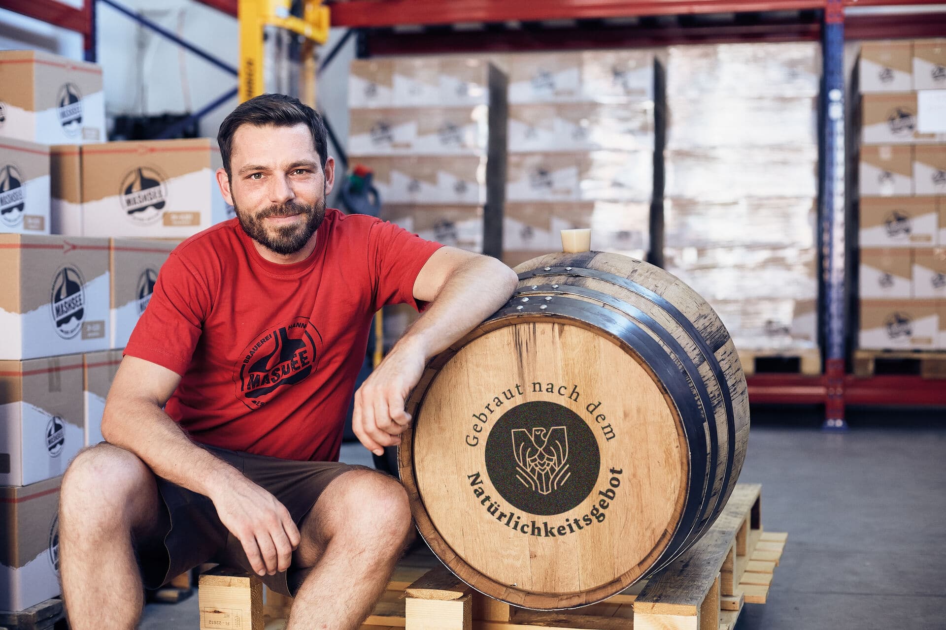 - Kolja Gigla mit Fass: © Alexander Ulrich Paul Sobotta / www.alexander-sobotta.com