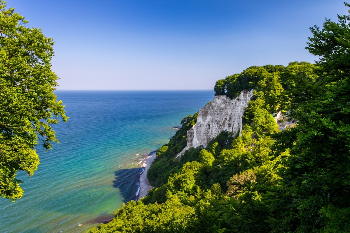 Der Königsstuhl ist die berühmteste Kreidefelsformation im Nationalpark Jasmund auf der Insel Rügen, die zum Meer hin steil abfällt. Um den Namen ranken sich viele Theorien: eine Sage behauptet, dass derjenige, der als erstes den Königsstuhl von der Seeseite her erklimmen konnte, auch König wurde. Oder der Name geht zurück auf den schwedischen König Karl XII., der von dieser Stelle aus ein Seegefecht gegen die Dänen geleitet haben soll. ℹ Buchtipp: 111 Orte auf Rügen, die man gesehen haben muss