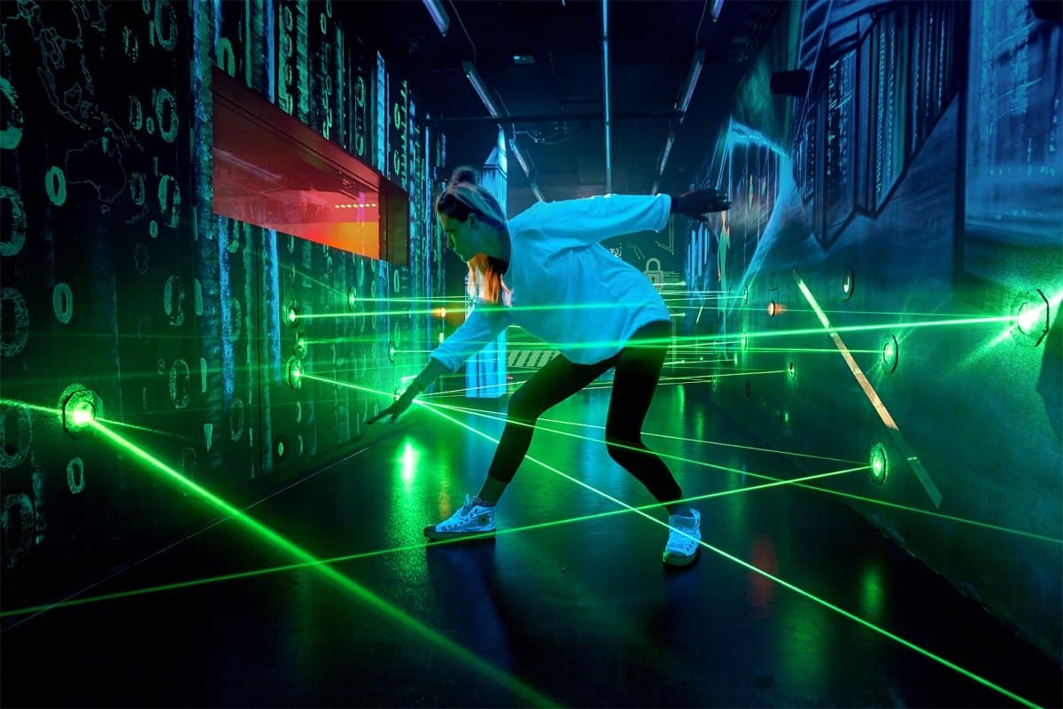 - Laserparcours: Der Besucher muss unbemerkt an den Laser-Strahlen vorbeikommen. Eine Herausforderung für Groß und Klein.