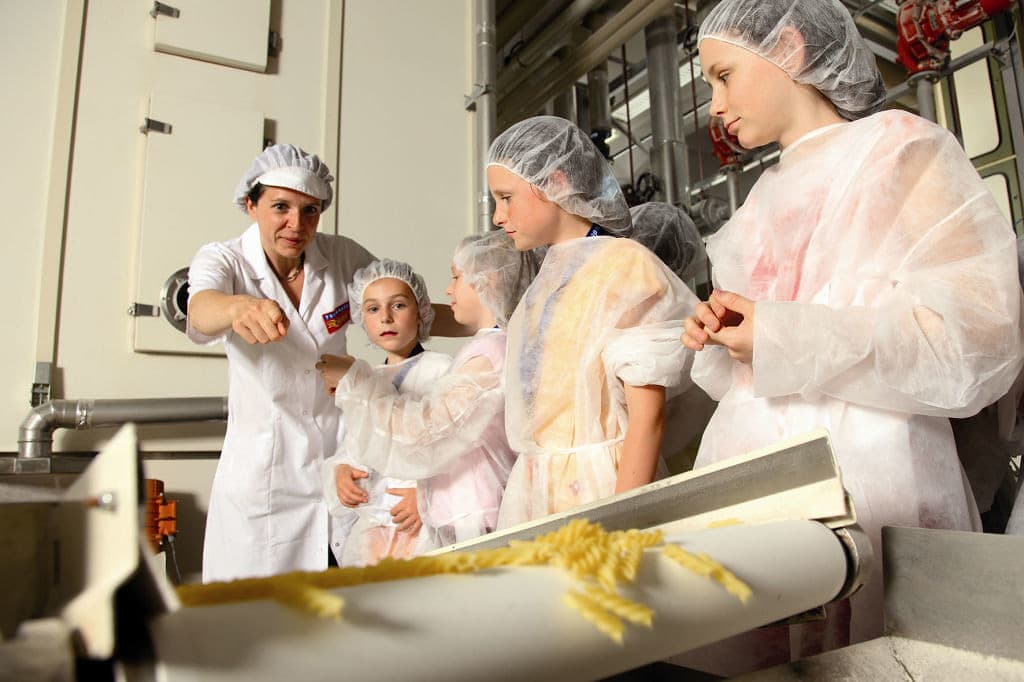 Während einer der beliebten Werksführungen, die etwa 70 Minuten dauert, erhalten Besucher bei laufender Produktion einmalige Einblicke in die moderne Nudelherstellung. Während der Führung läuft man entlang der Produktions- und Verpackungsanlagen und wird dabei von fachkundigem Personal begleitet. Hier kann man von der Herkunft und Anlieferung der Rohstoffe über die Teigmischung und Trocknung bis hin zu den fertig verpackten Nudeln den Produktionsprozess nachvollziehen – und dabei nebenbei die Frage klären, wie das Loch in die Makkaroni kommt.