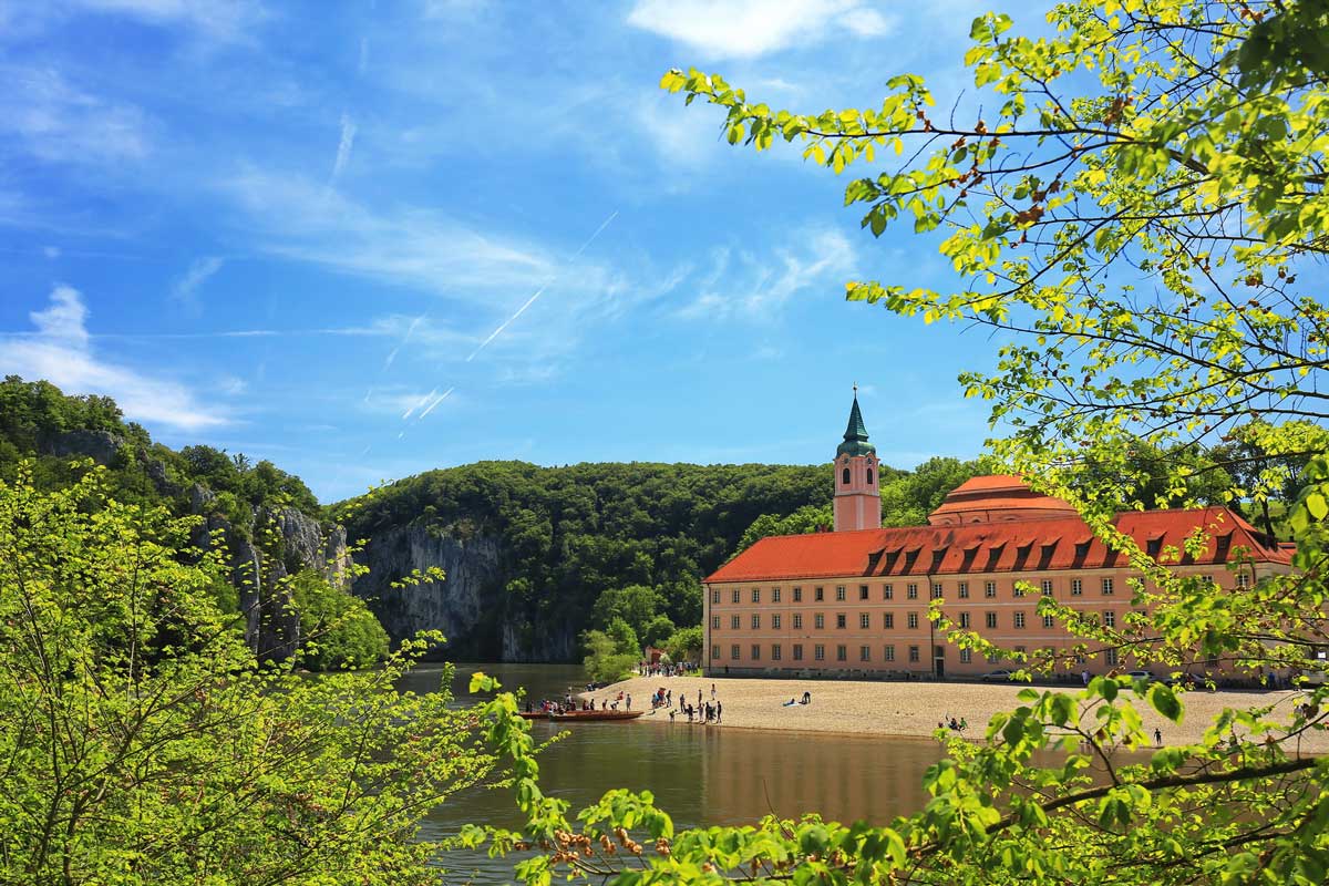 1. Etappe: Regensburg – Kelheim: Gleich auf der ersten Etappe wartet so manches Highlight: sehenswert ist nicht nur die Altstadt von Regensburg, die zum Weltkulturerbe der UNESCO gehört, sondern auch die heilenden Schwefel- und Moorbäder des Kurortes Bad Abbach, die prächtige Kuppel der Befreiungshalle und das Kloster Weltenburg mit seiner barocken Klosterkirche und der ältesten Klosterbrauerei der Welt in Kelheim, wo man das Naturschauspiel des Donaudurchbruchs bewundern kann.