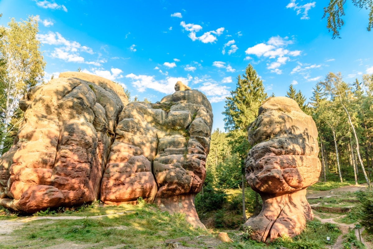 2. Etappe: Lückendorf – Waltersdorf (11 km): Von Lückendorf führt die zweite Etappe des Oberlausitzer Bergweges zunächst auf den Hochwaldgipfel mit Aussichtsturm, der eine schöne Fernsicht bietet. Über Hain und Jonsdorf geht es zum Nonnenfelsen, dann ist das Etappenziel Waltersdorf erreicht.