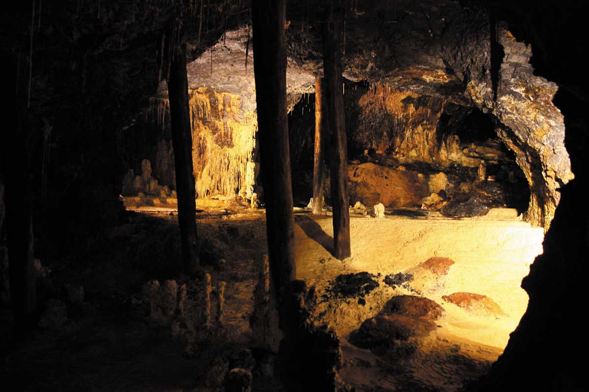 Die Dechenhöhle wurde im Juni 1868 von zwei Eisenbahnarbeitern entdeckt und gehört zu den schönsten Tropfsteinhöhlen Deutschlands. Benannt wurde die Höhle nach dem Bonner Geologen und Oberberghauptmann Heinrich von Dechen. In der „Königshalle“ kann man originale Höhlenbärenknochen in den Profilwänden der Grube erkennen, und in der „Kanzelgrotte“ hängt mit dem „Kronleuchter“ die vielleicht schönste Stalaktitengruppe der Dechenhöhle, bevor es zum zauberhaft schimmernden „Nixenteich“ geht. www.dechenhoehle.de