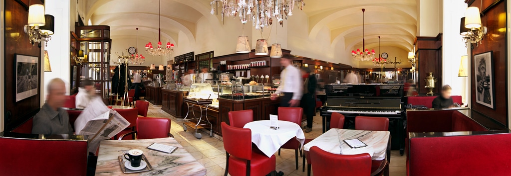 Das berühmte Traditionscafé Central im Palais Ferstel kann auf eine über 140-jährige Geschichte zurückblicken: seit 1876 gaben sich hier die größten Dichter und Denker ihrer Zeit die Klinke in die Hand. Hier findet man typische Speisen der Wiener Küche, traditionelle Kaffeevariationen und süße Versuchungen aus der hauseigenen Pâtissière. Herrlich sitzt es sich auch im mediterranen Arkadenhof. Café Central, Ecke Herrengasse / Strauchgasse, 1010 Wien, Öffnungszeiten: Montag bis Samstag 07.30 – 22.00 Uhr, Sonn- und Feiertag 10.00 – 22.00 Uhr. www.cafecentral.wien