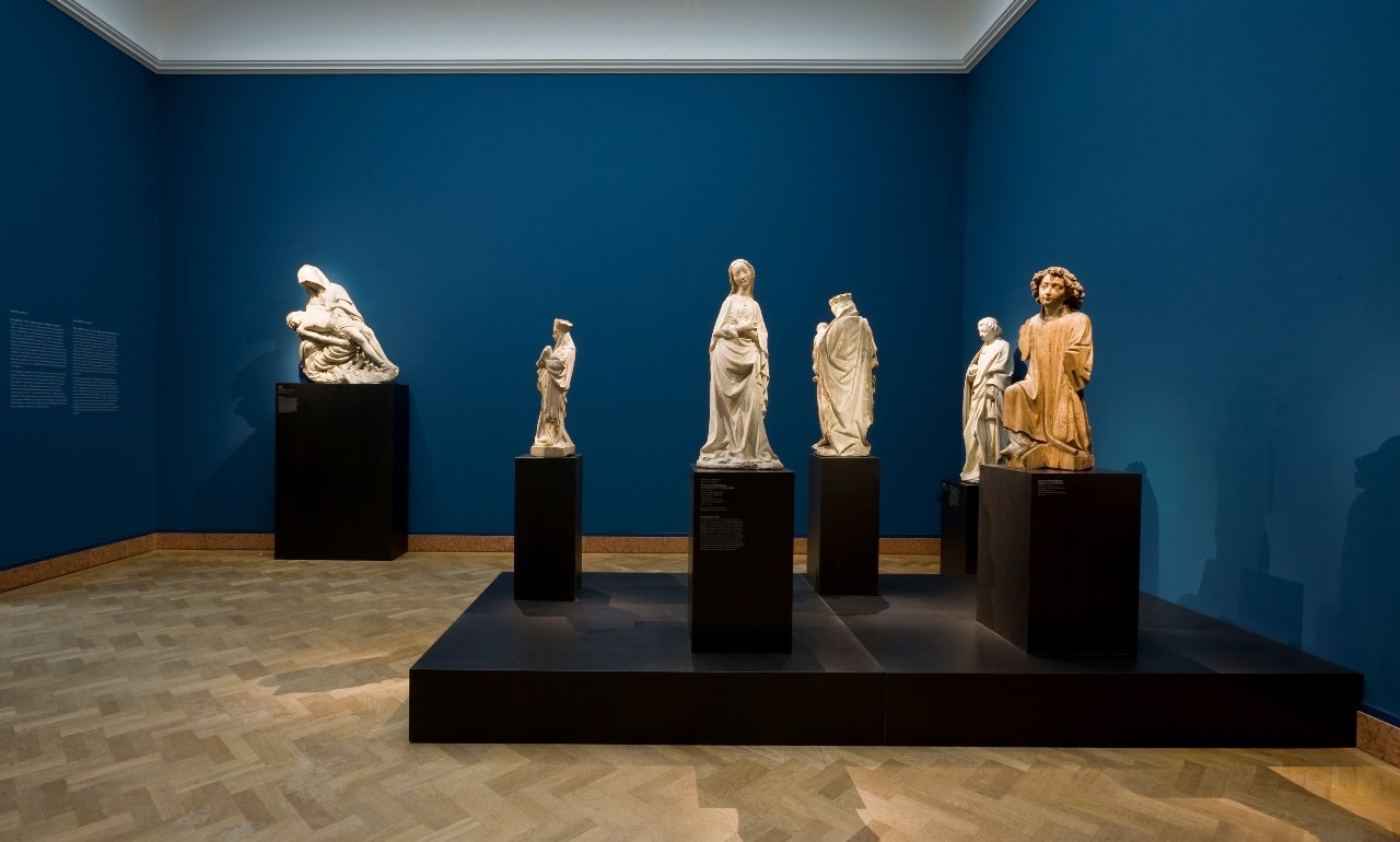 Europäische Skulpturen höchsten Ranges aus rund 700 Jahren zeigt die Mittelaltersammlung. Schwerpunkt der Sammlung bildet die deutsche, französische und niederländische Bildhauerkunst des 14. bis frühen 16. Jahrhunderts. Beeindruckende Stücke hier sind die aus Alabaster gearbeiteten Figuren des Kreuzigungsaltars aus Rimini und die aus Linde geschnitzte Statue des Heiligen Abtes.