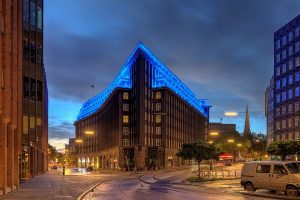 Das Chilehaus wurde im Jahr 1922 errichtet – als eines der ersten Hochhäuser Hamburgs und schon damals dank seiner ungewöhnlichen Architektur, die einem Schiffsbug nachempfunden ist, eine der Sehenswürdigkeiten der Stadt. Errichtet wurde es aus 4,8 Millionen handgeschichteten Backsteinziegeln – eine Ikone des Backsteinexpressionismus. Beim Bau des Chilehauses mussten einige Besonderheiten berücksichtigt werden: Durch die Nähe zum Zollkanal und zur Elbe war der Baugrund sehr weich, so dass Höhenunterschiede durch Sockelgeschosse ausgeglichen werden mussten. Der Heizungsraum in Form eines beweglichen Senkkastens ist vor Springfluten geschützt, da er einfach auf dem Wasser schwimmt. Der Name „Chilehaus“ geht übrigens auf den Bauherrn und Unternehmer Henry B. Solman zurück, der mit dem Handel von Salpeter aus Chile ein Vermögen von 60 Millionen Mark gemacht hatte.