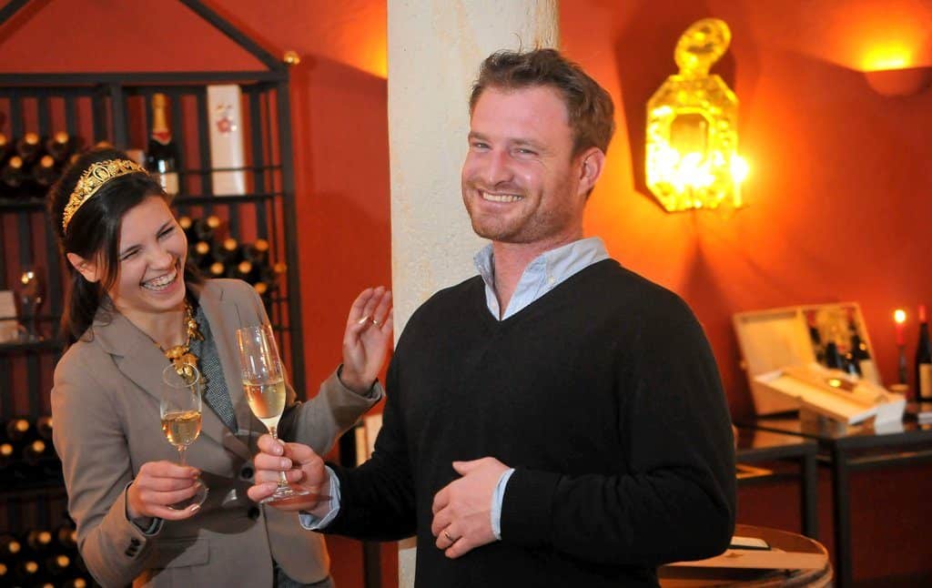 Weinkönigin und 1. Kellermeister in der Vinothek