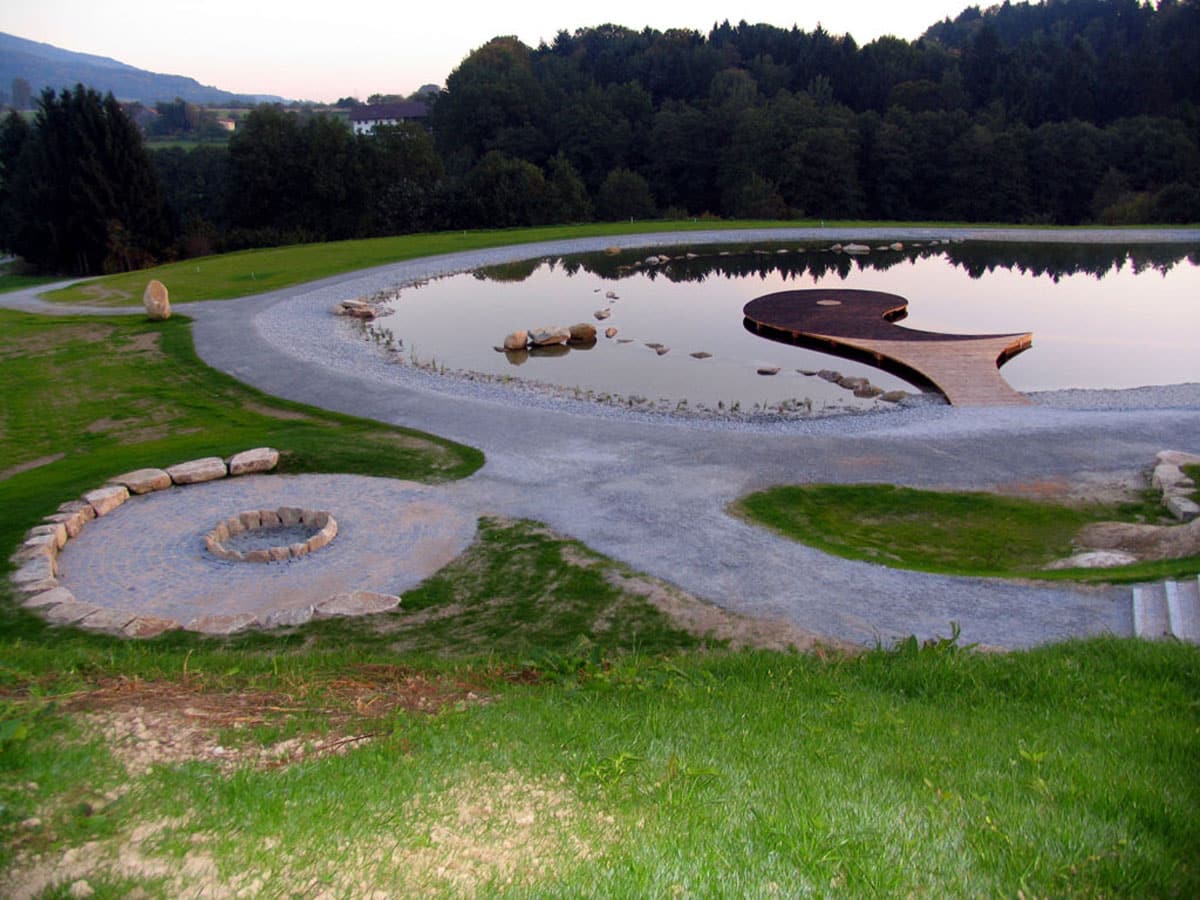 Eines der wichtigsten Regeln beim Feng Shui ist es, dass Ecken und Kanten möglichst vermieden und organische geschwungene Formen bevorzugt werden. Die Elemente Licht und Wasser geben dem Besucher Stärke und Kraft und helfen, sich zu entspannen – sie wurden entsprechend der Feng-Shui-Regeln im Park so angeordnet, dass Regeneration möglich ist. Der Feng Shui Park Lalling ist somit eine Ort der Erholung, der Lebensfreude und des inneren Gleichgewichts. Info: Der Park ist frei zugänglich.