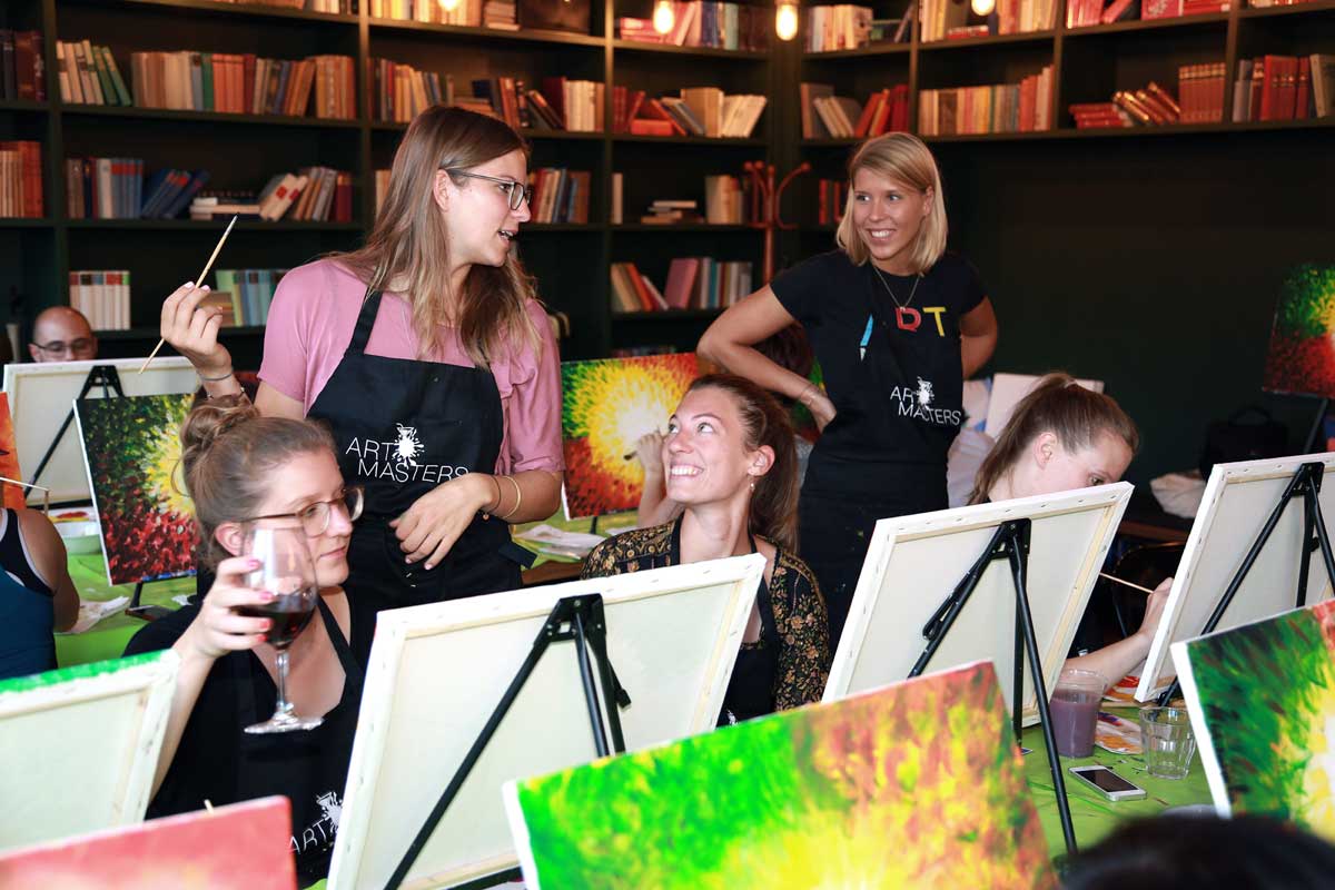 In entspannter Atmosphäre können Sie malend Cocktails, gutes Essen, coole Musik und interessante Leute genießen und Spaß haben. Gerade in analogen Zeiten, sucht „mensch“ immer mehr authentisch-analoge, stressfreie Erfahrungen – , diese können Sie bei solchen Events finden.