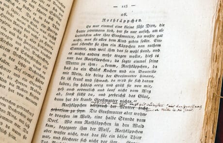 In der Schatzkammer der Ausstellung sind wertvolle Originale zu sehen, z.B. die Erstausgaben der „Kinder- und Hausmärchen“. Die persönlichen Arbeitsexemplare von Jacob und Wilhelm Grimm mit ihren handschriftlichen Notizen von 1812/1815 wurden 2005 zum UNESCO-Weltdokumentenerbe erklärt. Sie zeigen, wie die Märchen überarbeitet wurden, um sie insgesamt kindgerechter und auch pädagogischer zu machen.